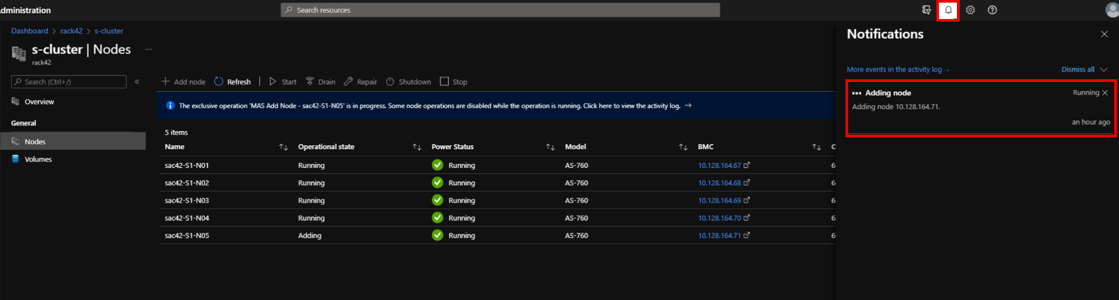 After a scale unit node is added, the storage expansion process begins and can run for multiple days before it completes the expansion.